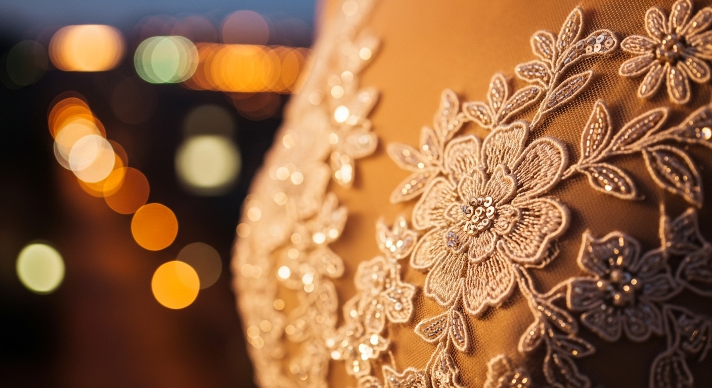 - Ткань — половина успеха. Шелк, шифон, атлас или качественное кружево. Помни: чем сложнее ткань (например, бархат или пайетки), тем сложнее с ней работать. Для первого раза идеально подойдет плотный атлас или струящийся креп.